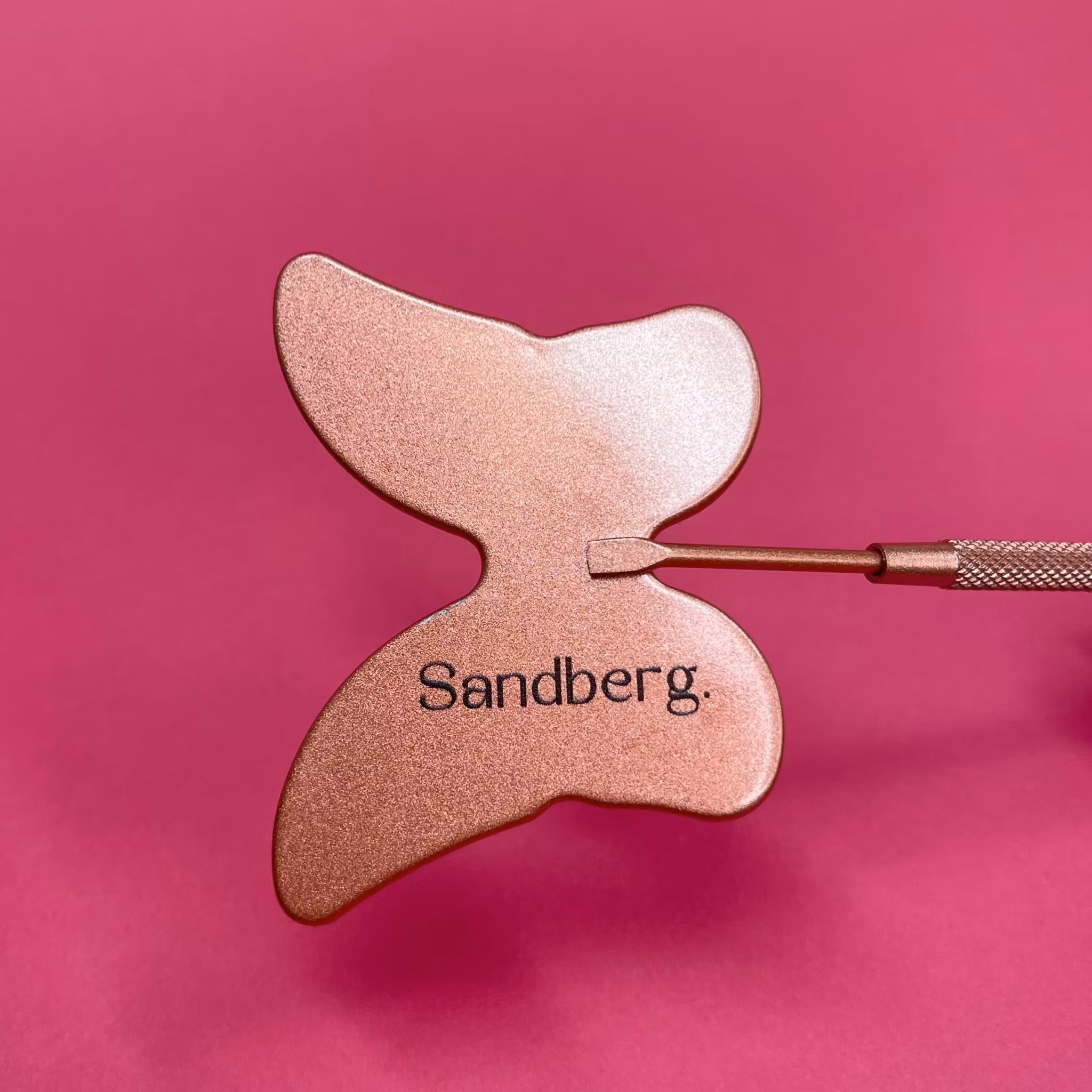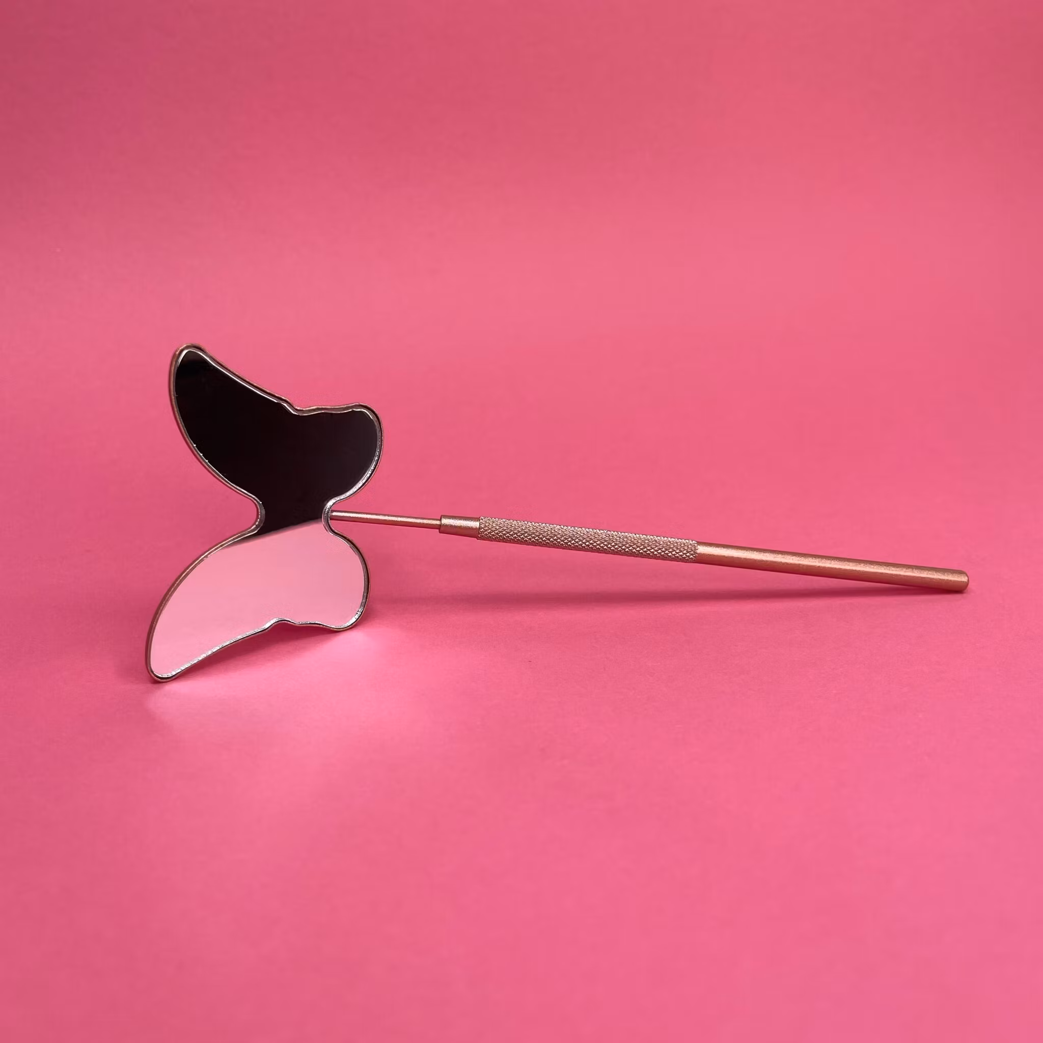 Liten spegel fjäril i rosé. Lätt att se hur du byggt dina fransar eller hålla koll på ditt Lashlift med denna spegel.Mått:Längd med skaft: 17,5cmBredd spegel: 6
